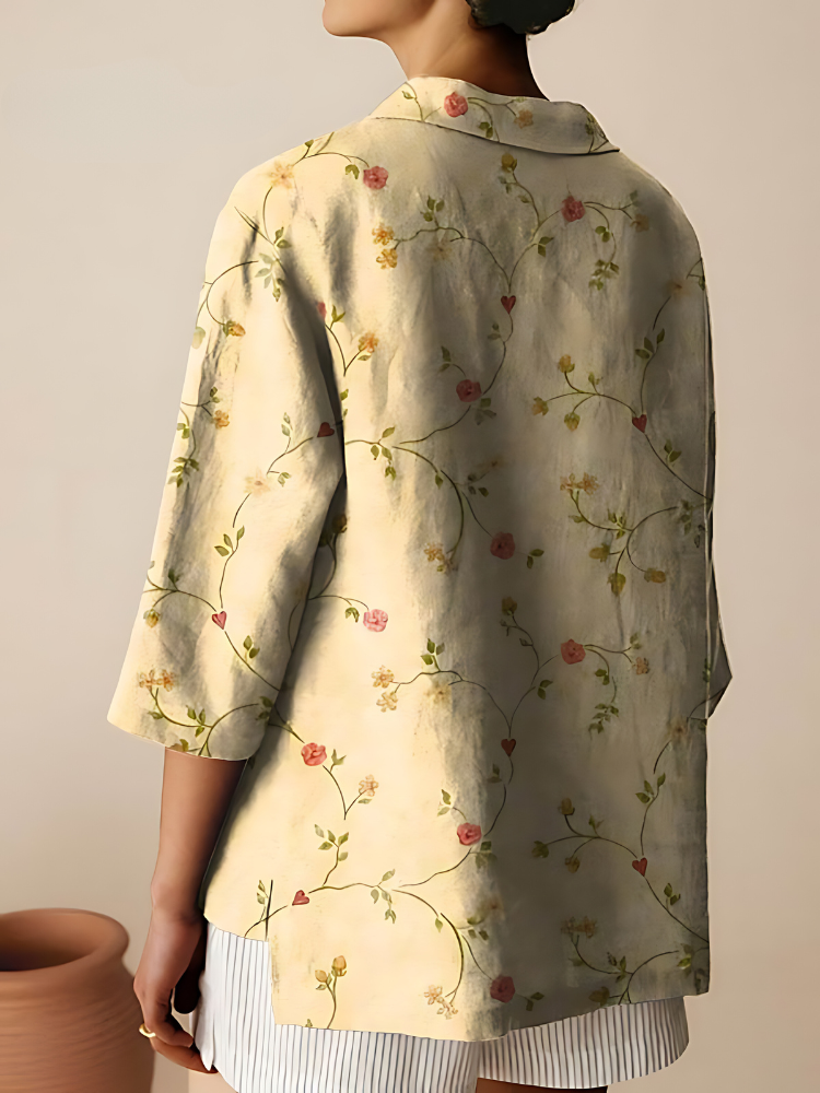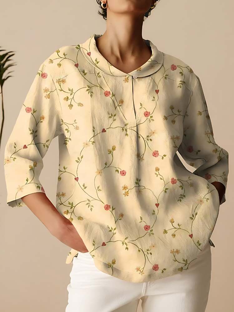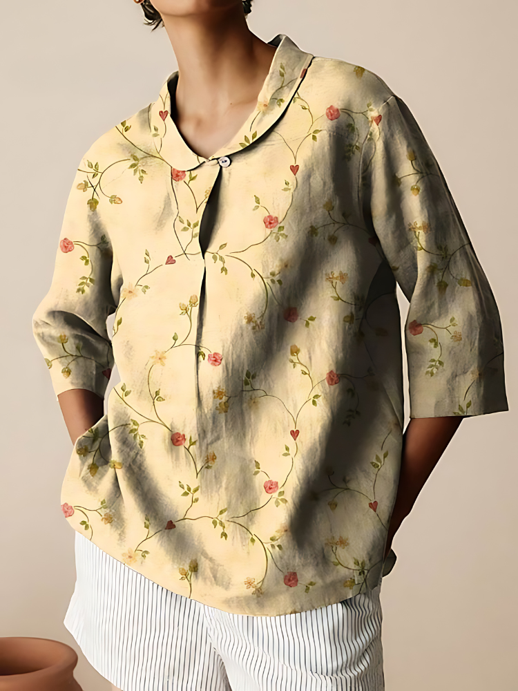 클라라 - 빈티지 플로랄 아트 프린트 3/4 소매 셔츠